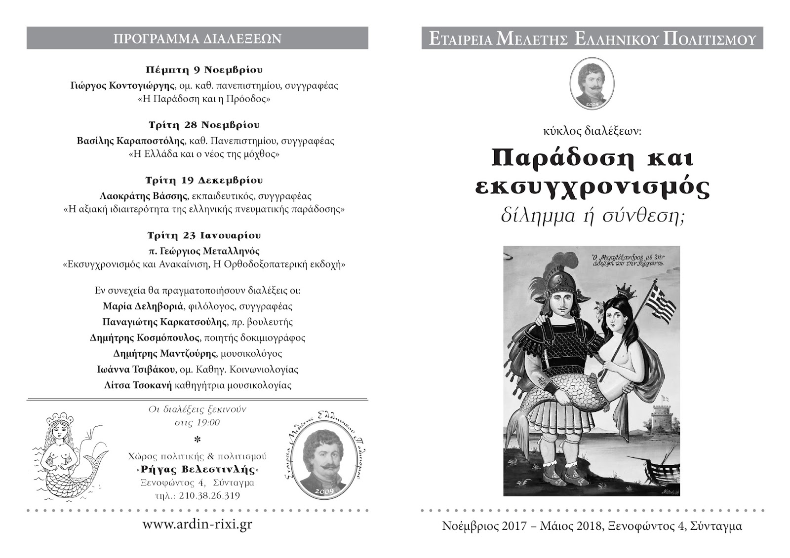 Κύκλος διαλέξεων: "Παράδοση και εκσυγχρονισμός, δίλημμα ή σύνθεση;" / περίοδος 2017 - 2018